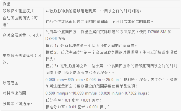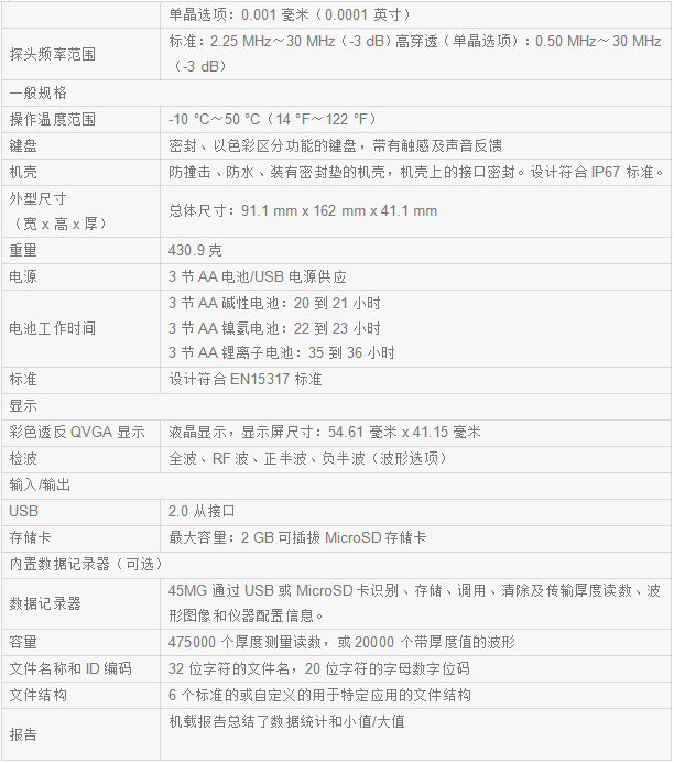 ★ 對于頻率范圍為0.5 MH到1.0 MHz的探頭,分辨率為0.01毫米(0.001英寸)